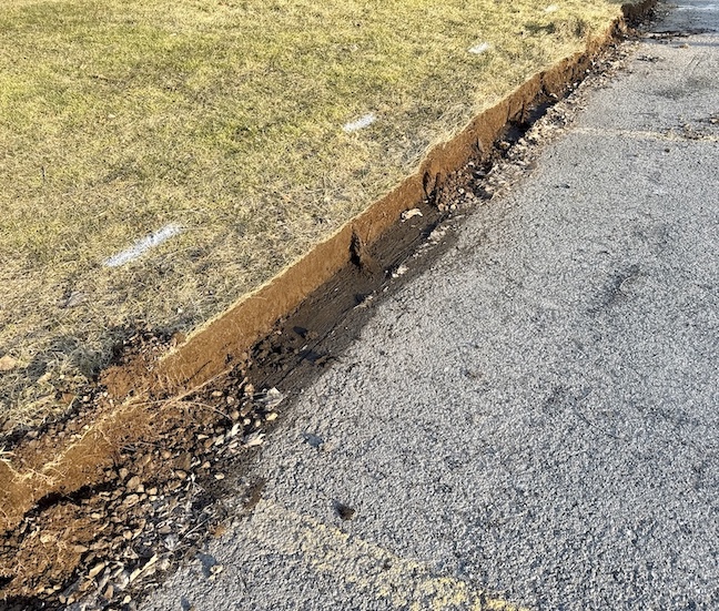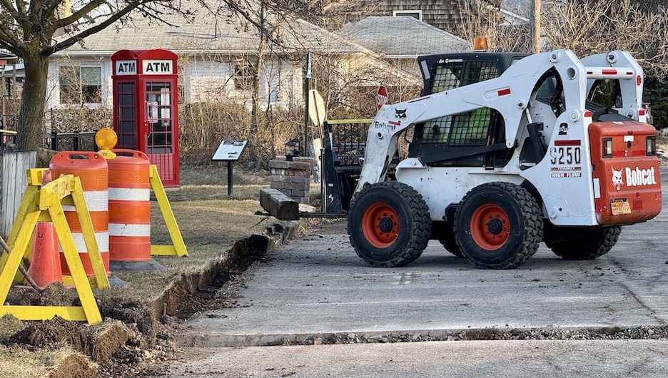 Earlier this week, laborers removed the wooden plank buffers along North Fourth Street’s grass/curbline at the edge of The Silo Restaurant’s parking area. Superintendent Anthony Mang said this would enable a new catch basin system, while also widening the street a bit.