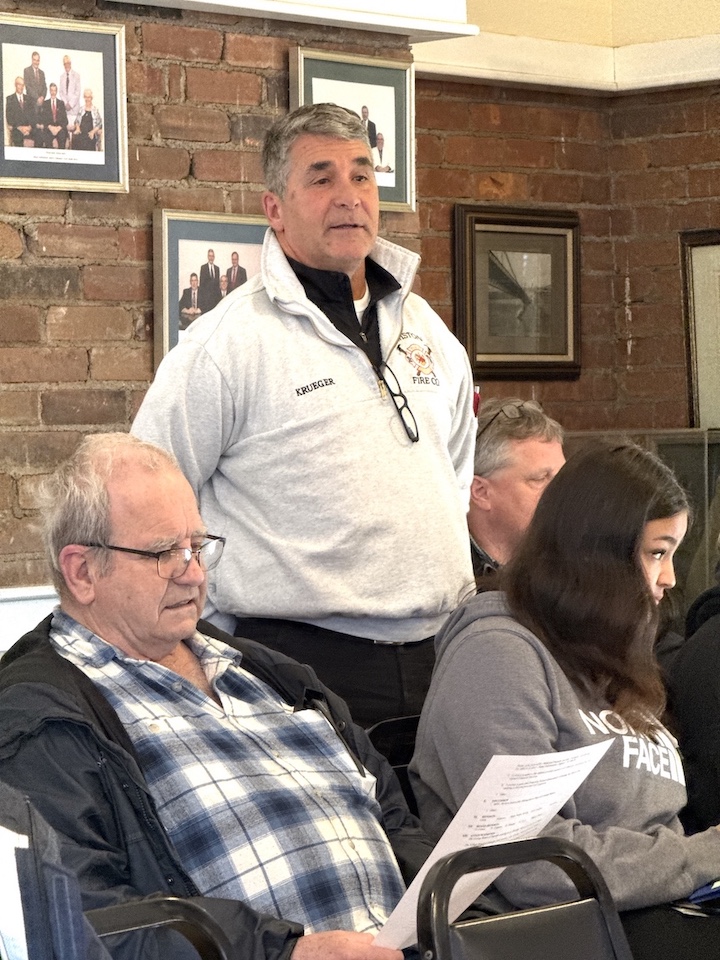 Lewiston Fire Co. No. 1 EMS volunteer Kevin Krueger addresses the Village of Lewiston Board of Trustees.