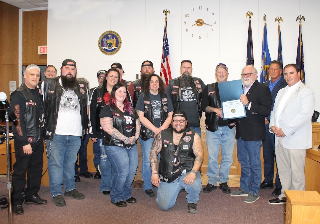 The Grand Island Town Board on Monday proclaimed the month of April as “Bikers Against Child Abuse” Month and honored the local branch of the bikers organization for its work throughout the year. Bikers Against Child Abuse was formed 27 years ago with a purpose to empower abused children and provide support as escorts through all phases of the criminal justice system.
