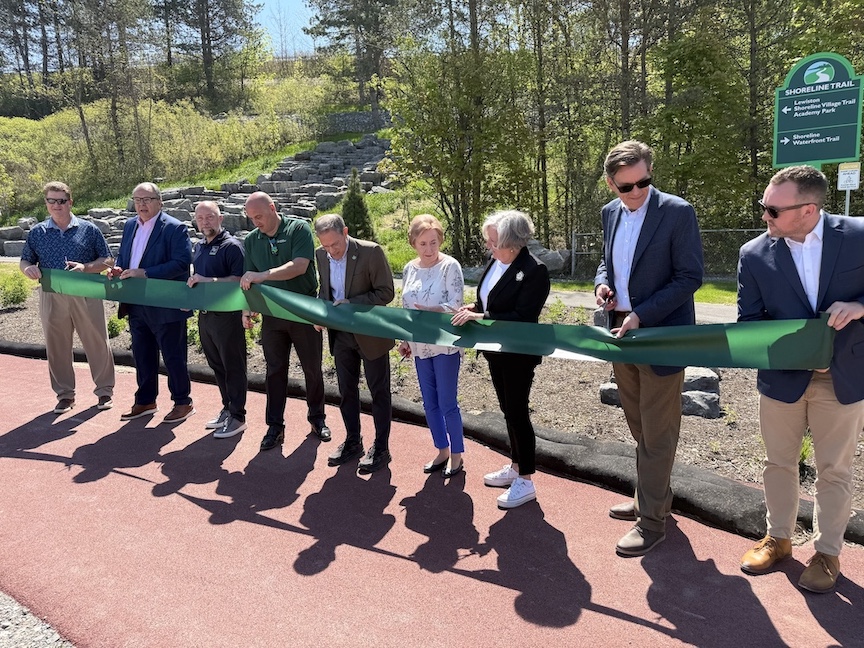 Local leaders cut a ribbon to celebrate the grand-opening of the new connector trail at Artpark State Park. (Photo by Joshua Maloni)