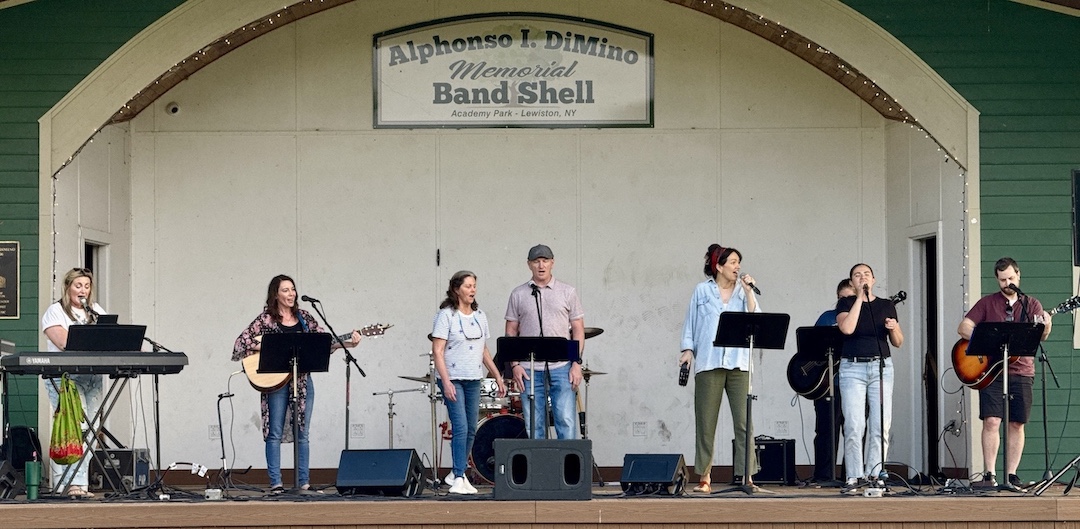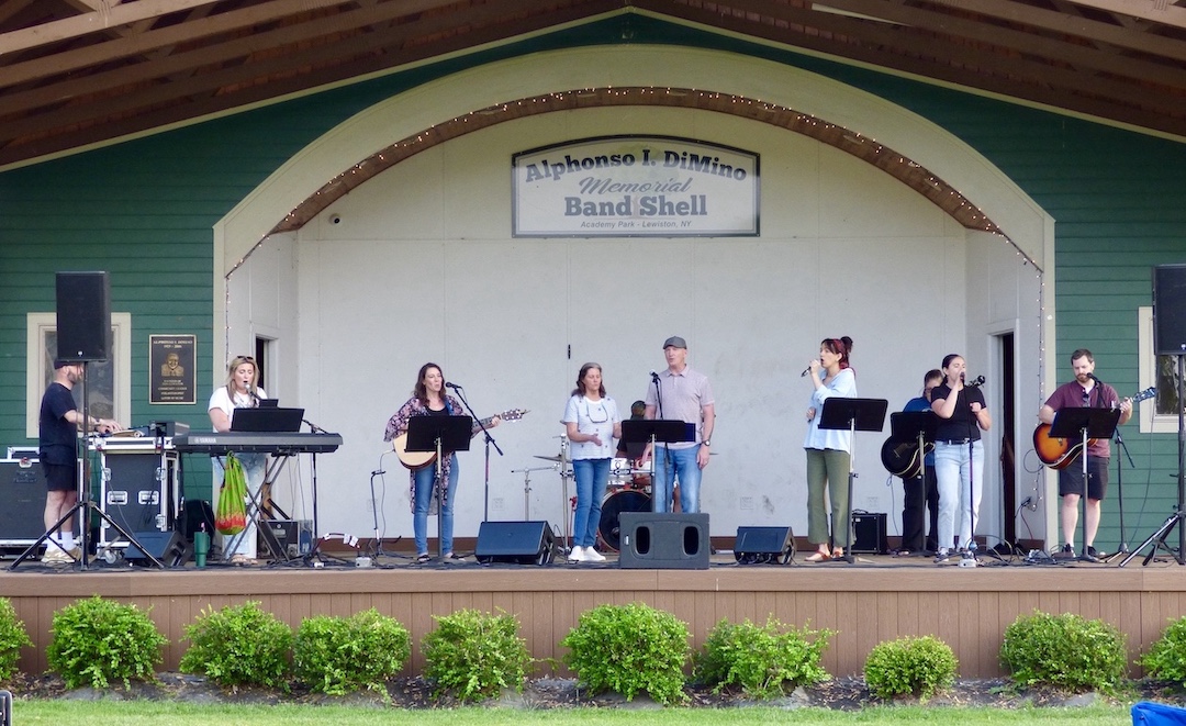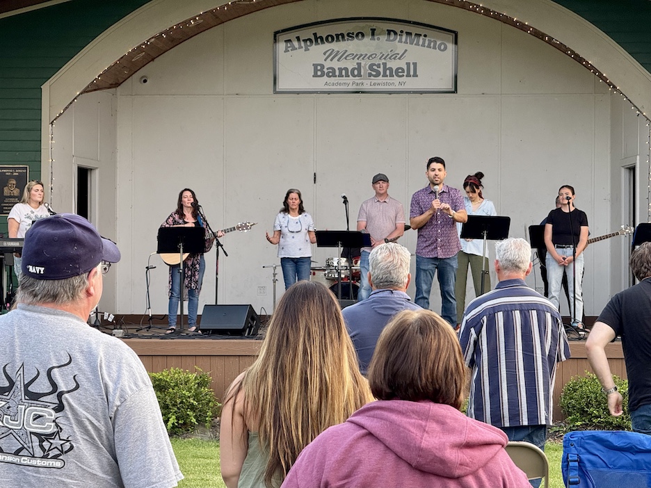 Later that day, Lewiston Assembly of God hosted “Worship in the Park,” featuring Brothers McClurg, the congregation’s own worship team, a “carnival tent” for children, and messages from Pastor Geordie Davey and Village Bake Shoppe owner Michael Fiore.