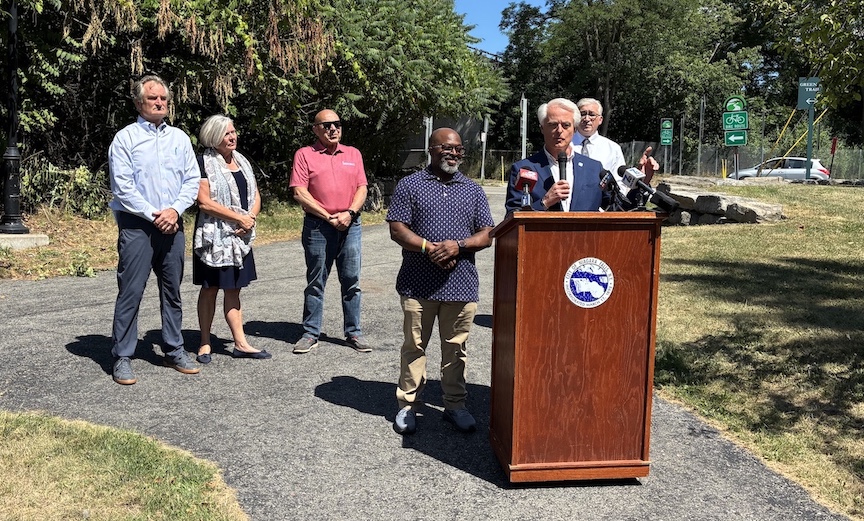 Niagara Falls Mayor Robert Restaino cited conversations with Councilman Brian Archie, “who spends most of his time in non-public hours dealing with, ‘How do we create a healthier world? What do we do to make things better for residents?’ It’s really been a mission of ours since we came to City Hall, whether it’s protecting food resources or, in this instance, getting people out and moving about. The City of Niagara Falls is one big city … but this trail allows people from the north end to ride out to Lake Erie, as well as the east, west and south end of the city. It really provides an opportunity for everyone to enjoy the beauty of the Niagara River shoreline and all what Western New York can offer those who enjoy the great outdoors.”