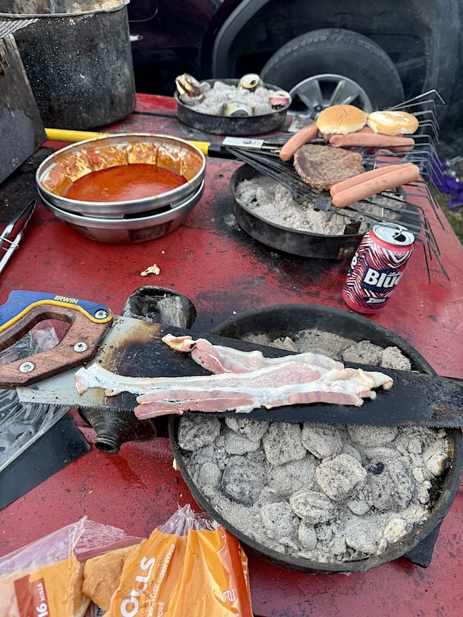 They then circled the wagons to Hammer's Lot, where they met (and Roden cleaned the ears of) “Pinto Ron,” who had just been covered in ketchup and mustard. Fans inquired about the movie, as chefs prepared various meats on hot metal surfaces including a rake and a saw.
