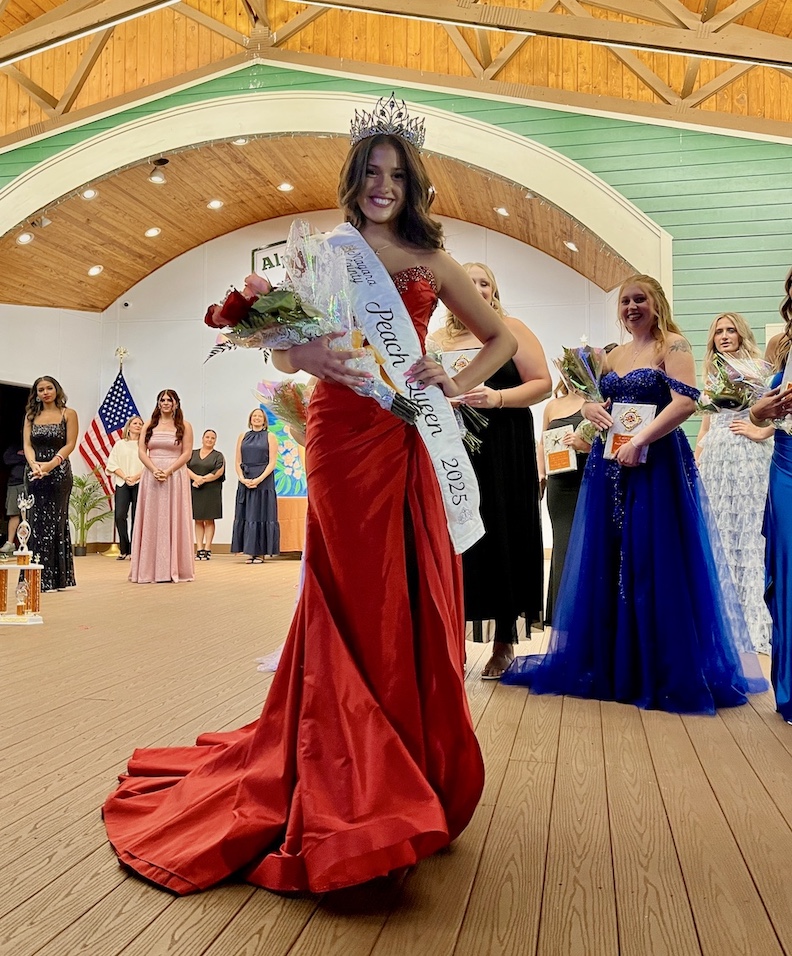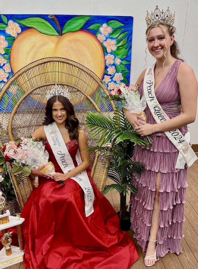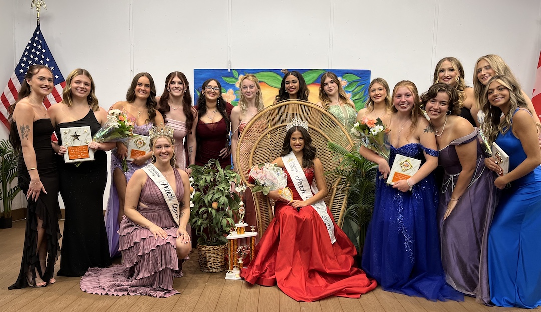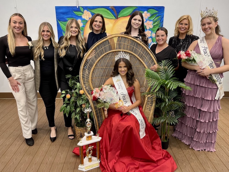 Sixteen women competed in this year’s pageant. Coordinator Jennifer Pauly explained, “Out of our 16 contestants for the 2025 Peach Queen program, eight were returning. Not only that, but we had 10 former Peach Queens this year come back throughout the weekend to help out. We also had a ‘first’ moment where Hannah Sherman was chosen as Miss Congeniality for the third year in a row that she has participated in the program!