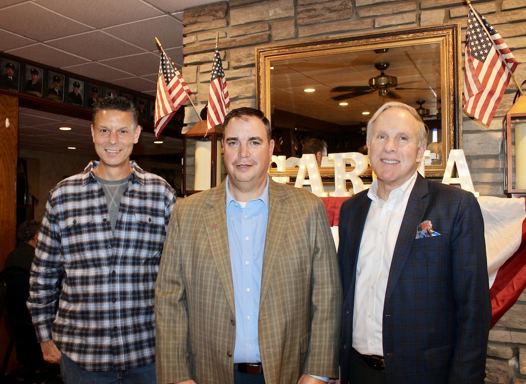 Winning candidates in Grand Island's local elections came to the Sandy Beach Yacht Club to watch the election returns. From left, they are: Town Highway Superintendent-Elect James Sedita, returning Council member Jose Garcia, and returning Town Justice Mark Frentzel.