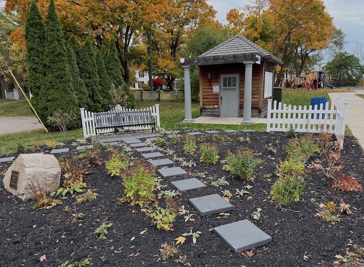 •Adjacent to the International Peace Garden, Beautification installed a new garden in honor of Dick and Fern Moses. Volunteers also redid the Marilyn Toohey garden at the Red Brick. The site includes a new metal bench donated by the Toohey family, as well as a new white fence and walkway stones, mulch, various plants and a tree courtesy of the Lewiston Garden Club.
