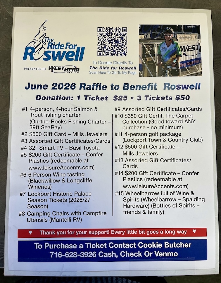 Per its website, the Ride for Roswell will take place Saturday, June 27, at the University at Buffalo’s North Campus – with nine routes to choose from: ranging from 4 to 100 miles. Participating riders must be 16 years old or over, and raise $200 by the day of the ride.