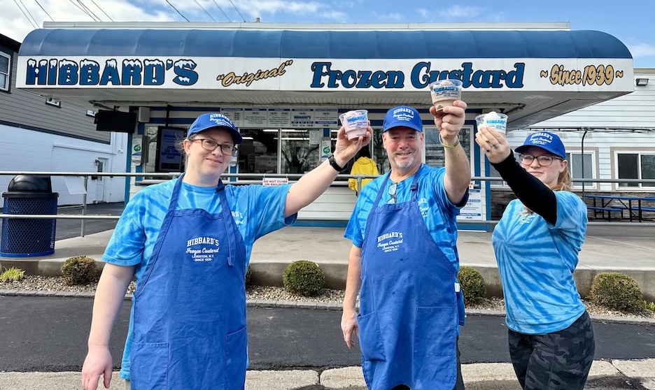 Celebrating opening day at Hibbard’s Original Frozen Custard are team members Robin Collier, Dan Buchner and Kymbrlee Simmons. Visit Lewiston’s iconic sweet shop at 105 Portage Road, Lewiston.