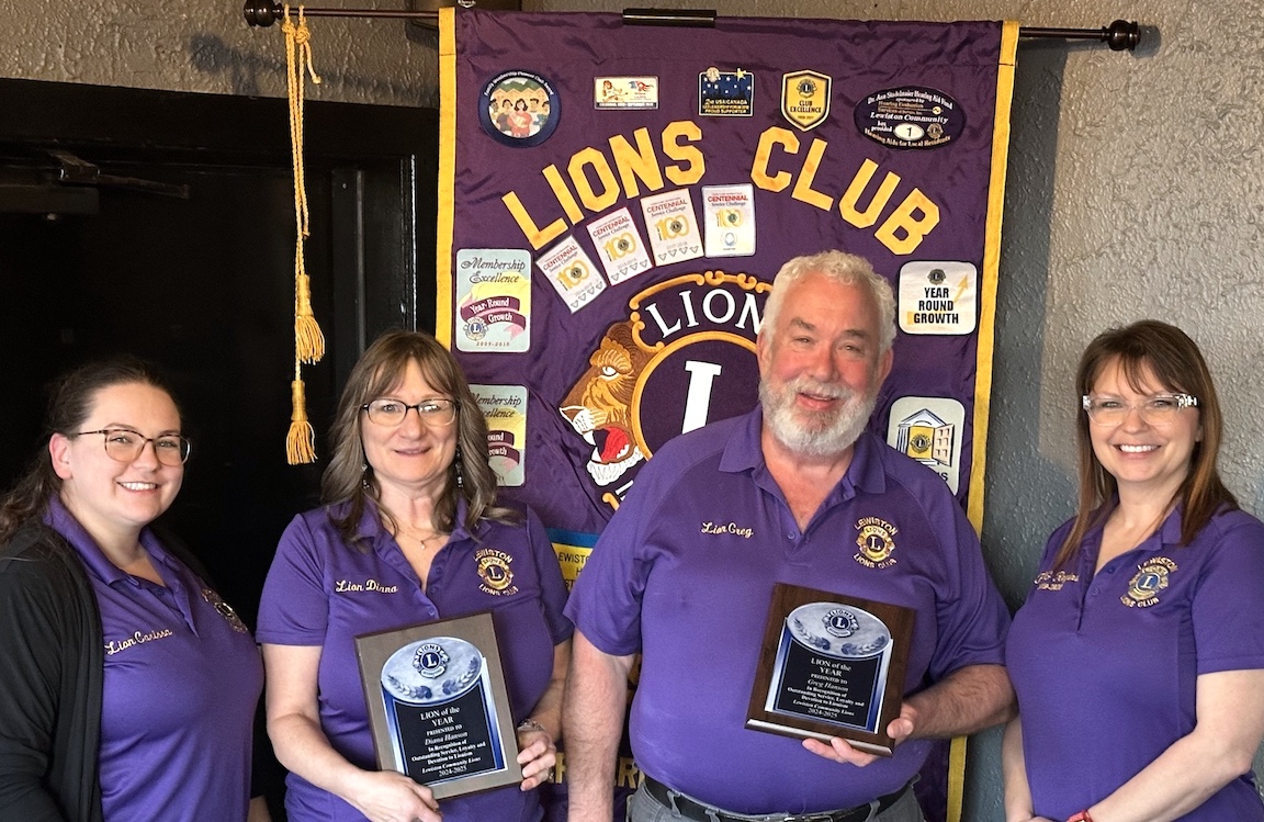 The Lewiston Community Lions Club recently recognized Lion Diana and First Vice President Greg Hanson (center), who were honored with the Lion of the Year awards. The Hansons have been dedicated members of the club since 2022 and have served in various leadership roles. They've been actively involved in many club initiatives, including the annual Village of Lewiston Earth Day cleanup.