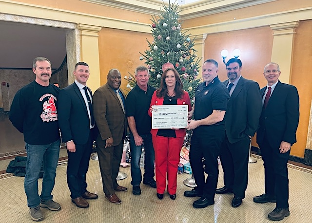 Before Tuesday's meeting of the Niagara County Legislature, the Niagara Falls Fire Department (NFFD) dropped off bags of toys in support of the Christmas Giving Tree located in the rotunda of the Niagara County Courthouse in Lockport.