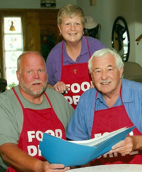 Sister Beth Brosmer (center) of Heart and Soul of Niagara Falls, the Rev. William Lowry (center) of Care and Share Pantry of Ransomville, and Don Luce (right) of Community Missions, review reports of the food/cash donations held on Tuesday nights at both entrances to Artpark.