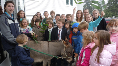 In celebration of Palm Sunday last weekend at First Presbyterian Church of Youngstown, a live donkey led off services, recalling how Jesus rode a donkey into Jerusalem on the first Palm Sunday.