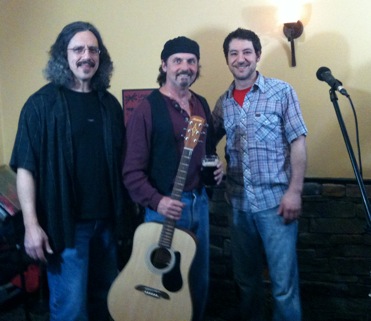 Dave Thurman (center) was the lucky winner of an acoustic guitar donated by Victor Garcia (left) of Vic's Woodshed Music, and Tony Petrocelli (right) of Lewiston Music. Tickets were sold during the six-week series of Toast and Jam, sponsored by Lewiston Council on the Arts and the Brickyard Pub & B.B.Q. in Lewiston.