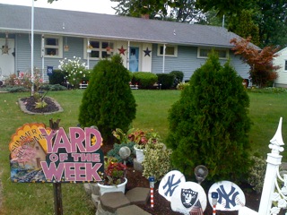 This week's Youngstown Garden Club "Yard of the Week" selection is the teamwork of Kevin and Dawn Stanisz. He says he does the landscaping and she does the gardening. Speaking of teams, their garden also displays their support for Dawn's Yankees and Kevin's Raiders.