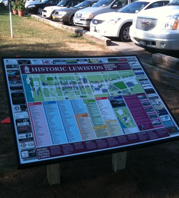 Visitors to the Village of Lewiston's waterfront are now a little more up-to-date on where to shop, eat and play. The first of three business and cultural directories is now in place, situated just past the Freedom Crossing monument.