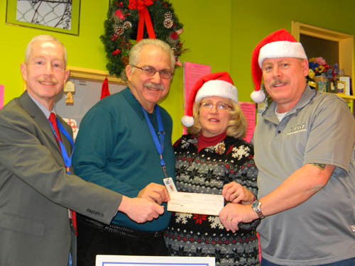 Terri and John Bednarczyk, owners of The Bee Hive Ceramic and Craft Studio in the Village of Lewiston, presented a $200 check this week to John Reardon, COO of Niagara Cerebral Palsy, and Joseph O. Mineo, NCP executive director/CEO.