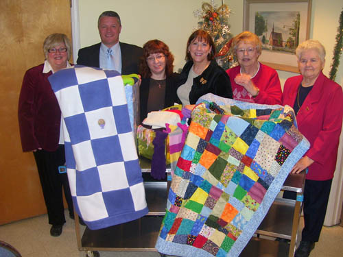 Child-sized throws and quilts, hand-made by Sarah Cunningham, Kathy (Cunningham) Alex and Marge Burnett from the Lewiston Senior Club at the Lewiston Senior Center, were recently donated to the Lewiston-Porter School District for distribution to the needy, reports center Director Jeanette Collesano.