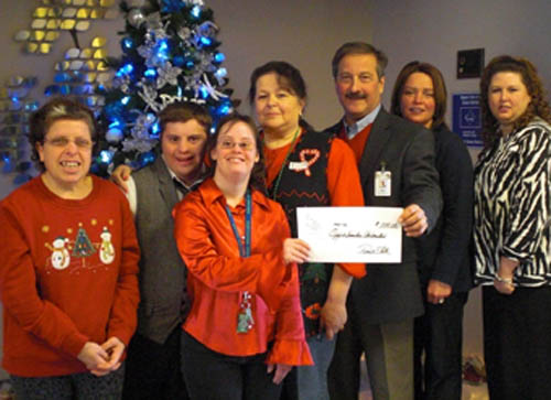 Employees from Our Lady of Peace nursing home in Lewiston made a generous donation from their Spirit Fund in honor of Opportunities Unlimited of Niagara program participants who volunteer five times a week through the agency's day habilitation program.