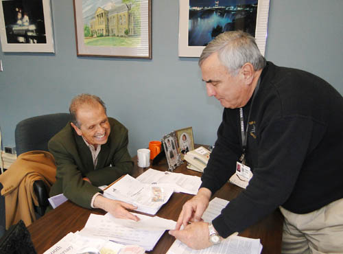 Legislator-designate Richard Soluri, formerly the Village of Lewiston mayor, met recently with Niagara County Legislature Chairman Bill Ross (right) to oversee the transition of the 12th Legislative District from Assemblyman-elect John Ceretto to himself. The pair discussed several issues, including committee assignments.