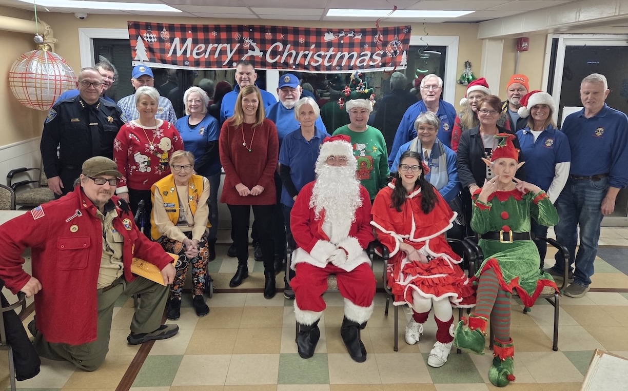 Helping to bring holiday joy to residents of the Ransomville Heritage Manor, members of the Youngstown Lions Club were joined Dec. 11 by Niagara County Legislator Irene Myers and Niagara County Sheriff Mike Filicetti, along with Santa Claus and Youngstown Lions Club Past President Millie the Elf.