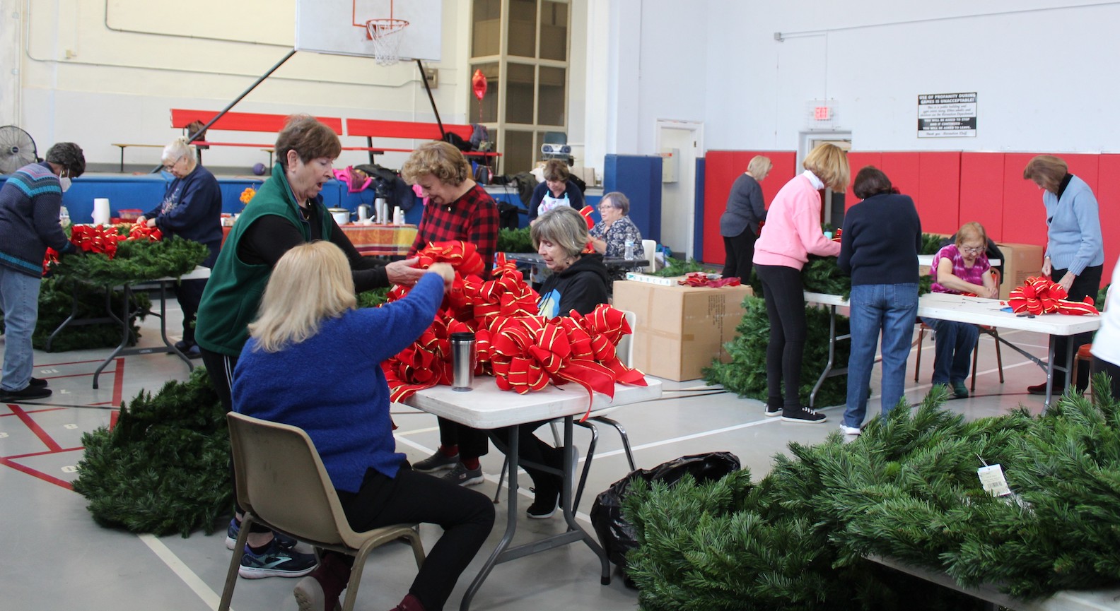 The Lewiston Garden Club met at the Red Brick School on Monday, Nov. 14. During the meeting, members prepared new holiday wreaths for use on Center Street lamp posts. The club helped purchase the new wreaths from funds raised by GardenFest. New bows for the wreaths were prepared by Kathy Opera and Marianne Gittermann.