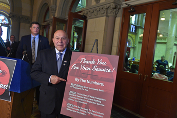Monday, Assemblyman Angelo J. Morinello attended a press conference in Albany today unveiling a bill (A.7655) to make volunteer firefighters and EMS volunteers exempt from paying state income taxes.
