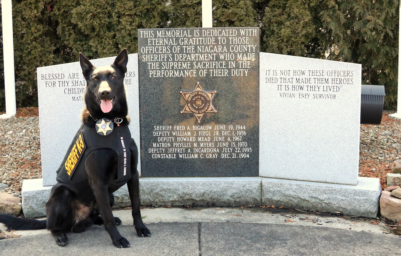 A Niagara County Sheriff's Office K-9, named Chief, has received a bullet and stab protective vest, thanks to a charitable donation from nonprofit organization Vested Interest in K9s Inc. The vest was sponsored by Pam, Corey and Todd Harmon of Lockport and embroidered with the sentiment "In memory of Chief Craig C. Harmon."