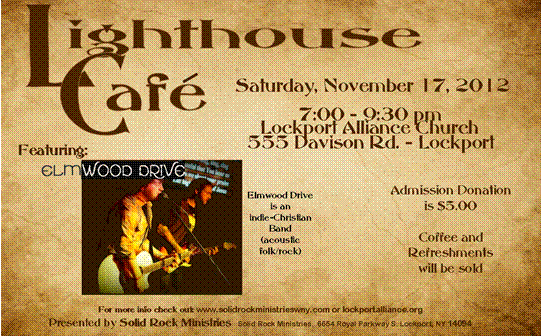 Indie-Christian folk-rock band Elmwood Drive headlines the next Lighthouse Café, on Saturday, Nov. 17, from 7 until 9:30 p.m. at Lockport Alliance Church, 555 Davison Road.
