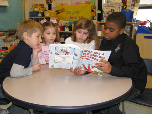 Holy Ghost Lutheran School's pre-K four class welcomes Leona Gonzales to class. She is re-enacting the story of the "Three Sisters."