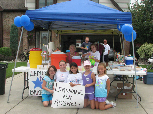 The Evarts family of Wheatfield and friends are shown at their "We're Sour on Cancer but Sweet on a Cure" lemonade stand and bake sale on Aug. 14 to benefit Roswell Park Cancer Institute.