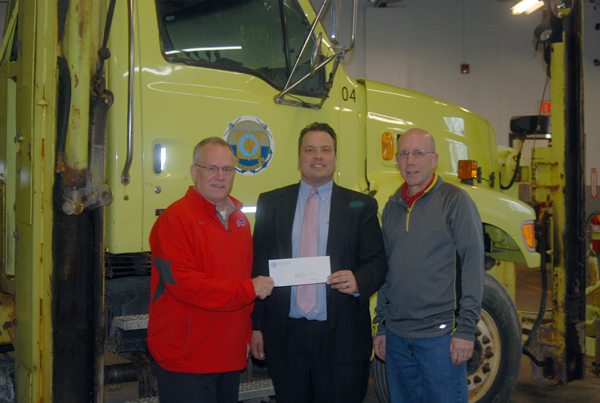 Erie County Comptroller Stefan Mychajliw visited the Grand Island Highway Department Tuesday to reimburse the town for snow plowing work.