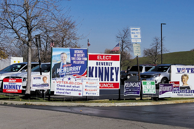The dispute over political campaign signs continued this week with the filing of a lawsuit on the matter in State Supreme Court by a candidate for Town Board against the Town of Grand Island government.