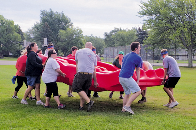 Kim Cich, who founded the Kaegebein Playground Committee, surveyed the approximately 50 volunteers who were building the new playground on Sept. 19 and said, "I am very grateful. For generations to come, this playground will be enjoyed by many in the community. I also feel very blessed by the community coming together."