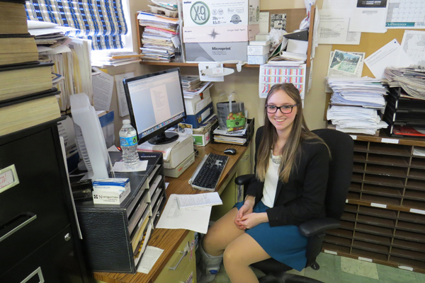 Sophomore Sarah Swagler visited the Island Dispatch Wednesday, April 1, as part of Grand Island High School's "Shadow Day" program.