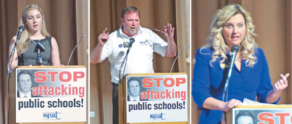 Stakeholders in the Grand Island Central School District joined at a rally Monday to speak in one voice in opposition to Gov. Andrew Cuomo's state budget proposal and education agenda.