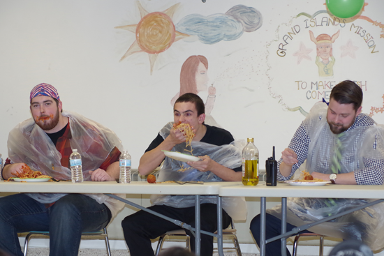 The annual Grand Island Rugby Club spaghetti dinner featured the first-ever 2015 spaghetti-eating contest.