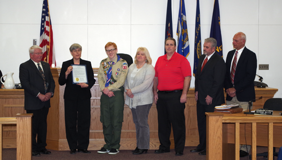 Prior to conducting regular town business Monday night at Town Hall, the Grand Island Town Board issued a town proclamation to Boy Scout Nolan Miles of Grand Island for receiving his Eagle Scout award.