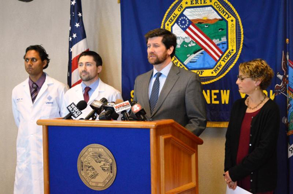 Erie County Executive Mark C. Poloncarz was joined today by Erie County Health Commissioner Dr. Gale Burstein, Chief Medical Officer of Women & Children's Hospital of Buffalo Dr. Stephen Turkovich, and Dr. Shamim Islam, M.D., of the division of infectious diseases at Women & Children's Hospital of Buffalo to discuss the importance of measles vaccinations in stopping the spread of the disease.