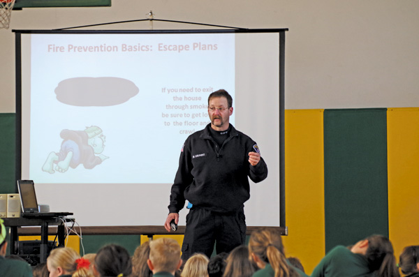 Grand Island Fire Chief Matt Osinski spoke to the students at St. Stephen School Wednesday as part of safety education during Fire Prevention Week at Island schools.