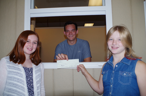 Jessica Flash, left, and Allyson Nemeth received a check from Josh Pabon, assistant manager of Bottle Junction. The money comes from patrons of Bottle Junction who decide to donate their bottle deposits to "Cooking for Cancer."