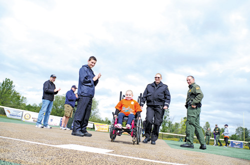 Members of the police turned out to serve as "celebrity buddies" at a Miracle League ballgame.