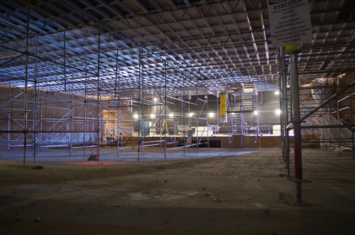 PHOTOS: The auditorium at Grand Island High School has been gutted as part of the ongoing capital project in the Grand Island Central School District. Work on the ceiling went on high above the aud floor on the platform.