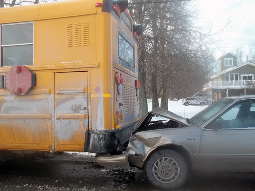 Shortly after 8:30 a.m. Thursday, Jan. 30, Grand Island Fire Co. rescue personnel responded to a motor vehicle accident involving a car and school bus on East River Road and Edgewater Drive.