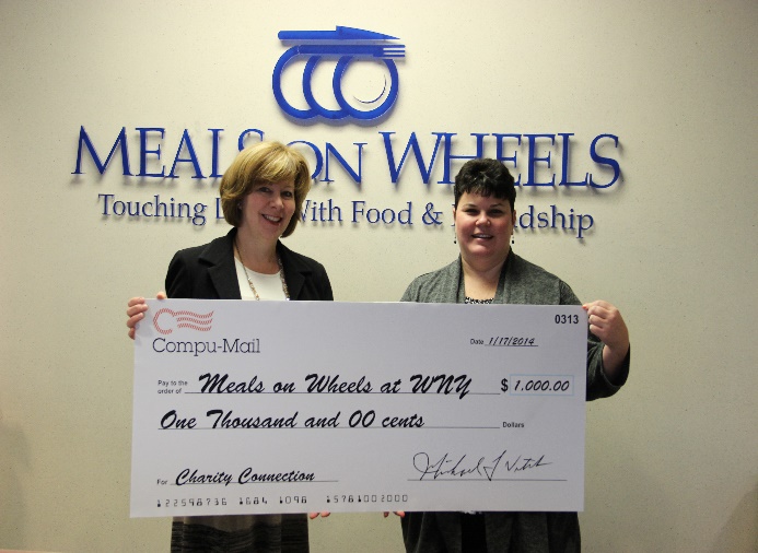 Meals on Wheels Foundation of Western New York is the recipient of a $1,000 donation through Compu-Mail's "Charity Connection" program. The organization was selected from numerous online nominations made by Compu-Mail's clients and associates throughout last fall.