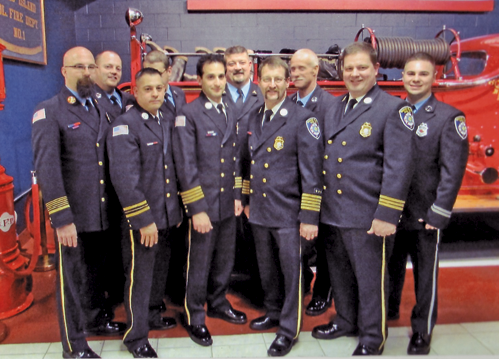 New York State Fire Training Instructor Mark Butler administered the oath of office to newly elected Grand Island Fire Co. officers on Saturday, Jan. 11, at fire headquarters, 2275 Baseline Road.