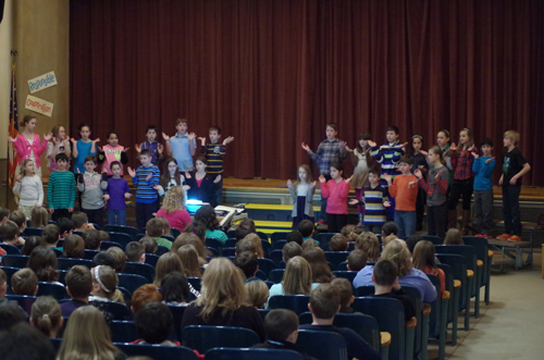 Students in the fourth-grade class of Kaegebein Elementary School teacher Katherine Chadwick presented three performances Jan. 31 of a musical play called "Make a Difference."
