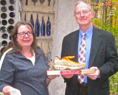 The big prize is a golden sneaker mounted on a board. The sneaker was once the Rev. Earle King's running shoe. Running shoes get retired more quickly than walking shoes, and the pastor of St. Martin-in-the-Fields Episcopal Church, 2587 Baseline Road, transformed his shoe into the most coveted prize of Grand Island's annual CROP Walk, held on Oct. 13 in Beaver Island State Park.