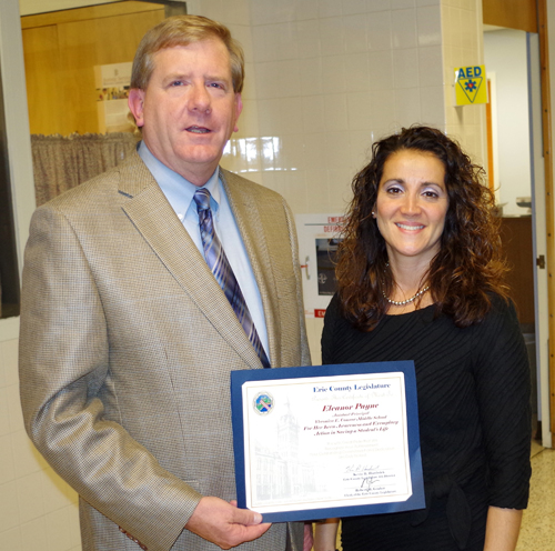Veronica Connor Middle School Assistant Principal Eleanor Payne was honored this week by Erie County Legislator Kevin Hardwick for her part in helping save the life of one of her students.