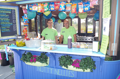 Members of the Kaegebein Playground Committee served up hot dogs, chips and water during a fundraiser July 20 at the Grand Island Fun Fest, held at Say Cheese Pizza Company.