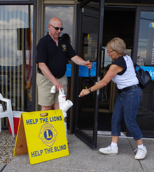 Tom Witkowski, past president of the Grand Island Lions Club, accepts a donation to the Lions White Cane Days last Friday in front of First Niagara Bank on Baseline Road. White Cane Days is a major fundraiser of the Grand Island Lions Club.